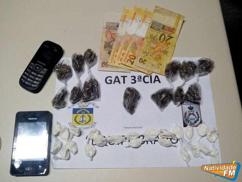 Dois rapazes foram detidos e diversas buchas de maconha apreendidas, durante operação conjunta, deflagrada na manhã desta quarta-feira (18), pelas Polícias Civil e Militar em Natividade. Os agentes cumpriram três mandados de buscas e apreensão em residências nos bairros Liberdade, Estação e São Pedro.